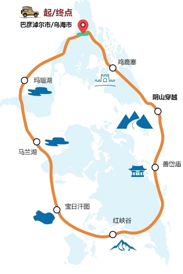 【里程:900公里    宿:巴彦淖尔饭店    餐:午晚 】